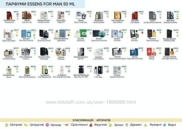 Chanel, Dior, Tom Ford ,Armani, Versace, Gucci, YSL, Paco Rabanne та багато інших.
