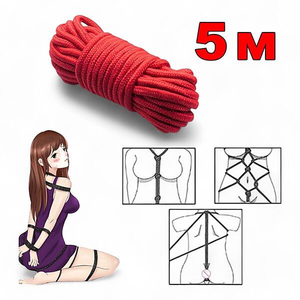 Верьовка шибарі | Зв'язування БДСМ Мотузка для зв'язування Найпростіший і надійніший спосіб знерухомити партнера це - його зв'язати). Мотузка з м'якої бавовняної нитки чудово підійде. Довжина мотузки 5 метрів, цього достатньо, щоб досить надійно зафіксувати Вашого партнера у зручній позі. Якщо Ви хочете кращого результату, наприклад, добитися не тільки фіксації, але й якогось естетично привабливого ефекту краще запастися 2-3 мотками)))Тип: БДСМ