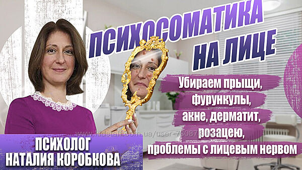 Наталия Коробкова Убираем психосоматику на лице (прыщи, дерматит, невралгии...) (2024)Исцеляем прыщи, фурункулы, проблемы с лицевым нервом, дерматиты, сухость кожи, розацею, акне и другие симптомы на лице с помощью специальной психологической работы (микс разных психотехник).