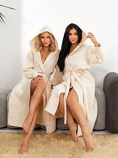 ✨Халат із поясом має просторий крій, великі кишені та зручний капюшон. Тканина швидко вбирає вологу та швидко висихає.