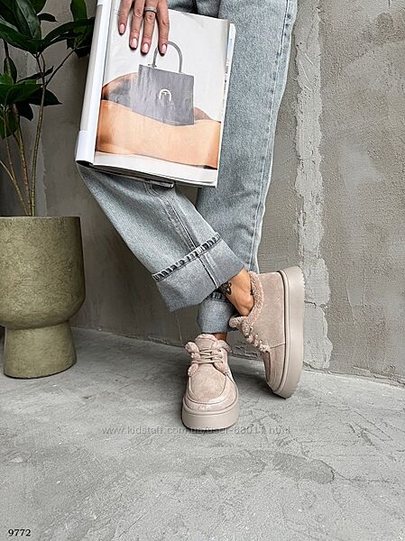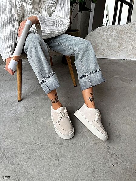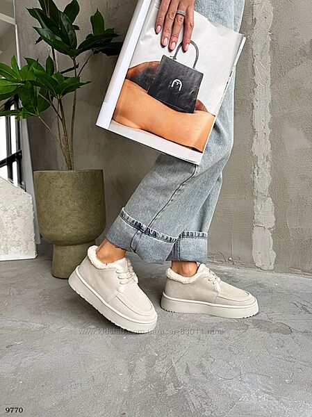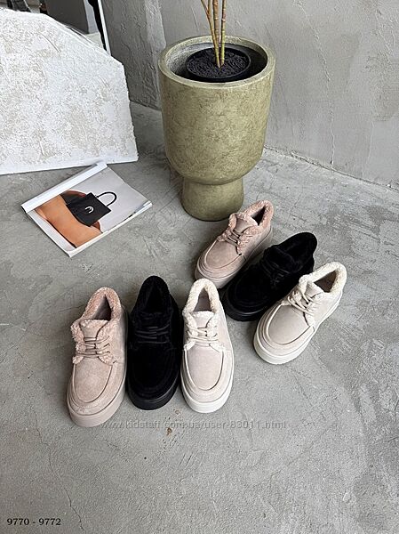 Виробник - Україна Зовні- натуральна італійська замша Всередині - хутро-натуральна набивна вовна(овчина) Висота підошви- спереду 3 см., позаду 4 см. Висота від п´яти 7 см. На середню повноту Розміри - 36,37,38,39,40,41 Якщо якийсь розмір відсутній, можливо замовити відшив будь-якого розміру у кольорах як на фото.