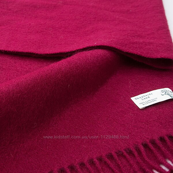 Очень мягкий, приятный к телу, не колючий, теплый, плотный, достаточно длинный, в благородном винном оттенке, по концам бахрома.