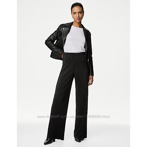 Подробное описание: Широкі чорні брюки плісе з еластичної тканини р.18
