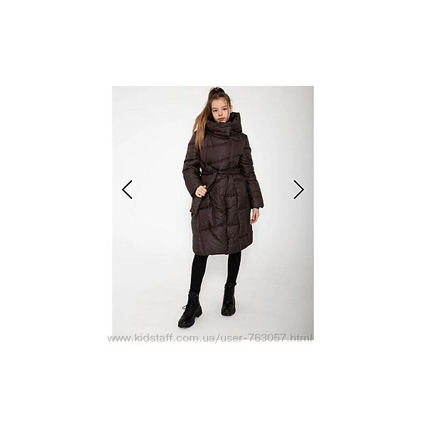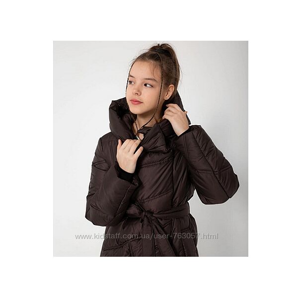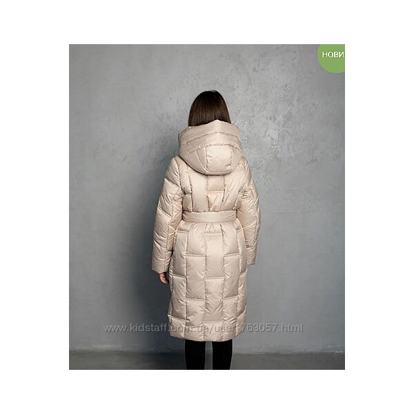 Зимове пальто для дівчаток – стильне рішення для холодної погоди, яке поєднує комфорт і сучасний дизайн.Силует і крій: Пальто має прямий крій з акцентом на талії завдяки поясу, що додає