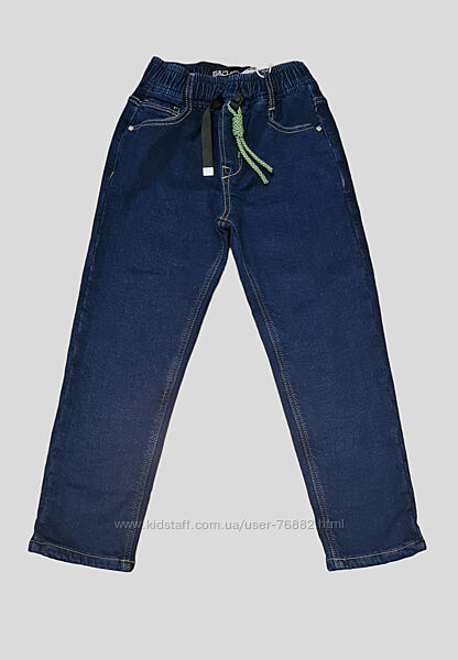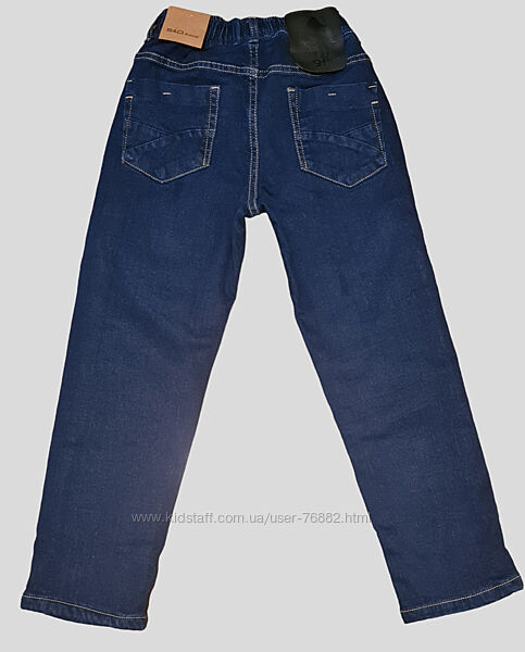 Утеплённые, на флисе, cтильные, модные, удобные, джинсовые брюки на резинкедля мальчиков , размер 8-16 . Спереди два кармана, сзади 2 накладных кармана
