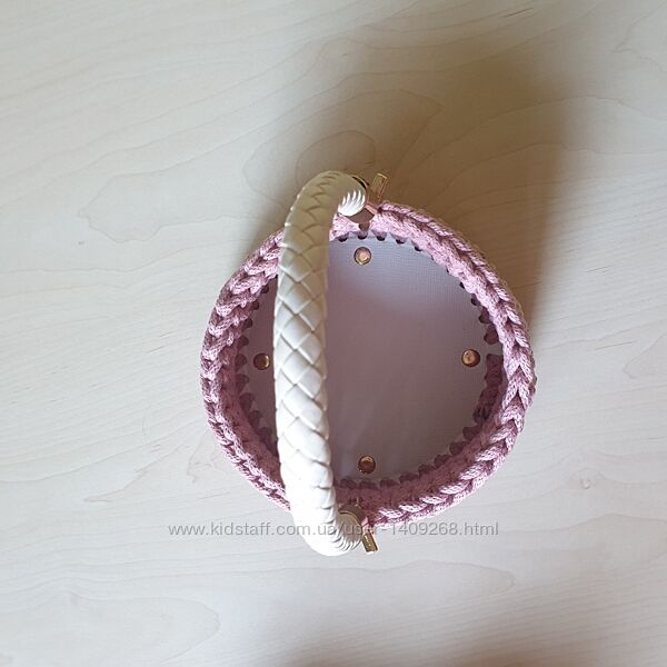 Маленький рожевий елегантний кошик з якісної турецької пряжі. Ручка біла, легко знімається. Дно з ніжками. Розмір: висота - 9 см, діаметр основи - 15 см, діаметр зверху - 12 см. В´язана гачком з бавовняного шнура. Ручна робота.Другие объявления продавца