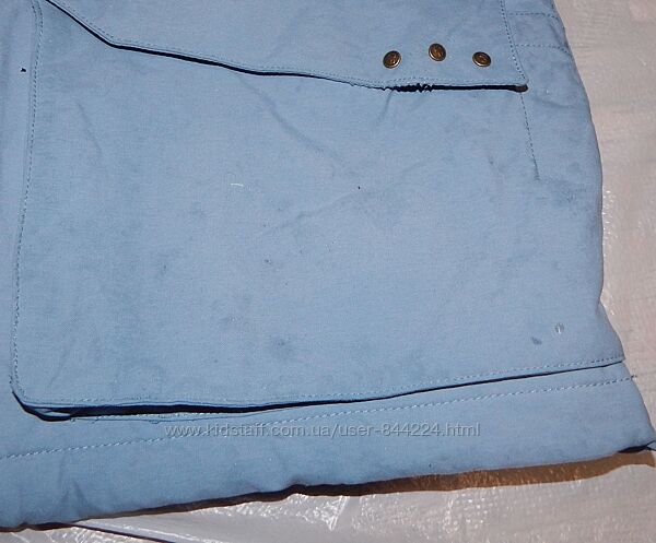 НЮАНСИ - некритично заношені манжети, заношена також планка, бліді плями майже по всій куртці невідомо від чого. Куртка ПІСЛЯ ПРАННЯ! Плями не відпераються. Сам матеріал не потертий, не почуханий, в досить непоганому стані, всередині взагалі дуже добре виглядає, тільки трішки комір зсередини заношений. Загалом, якщо її не розглядати спеціально, то дефекти в очі не кинуться.