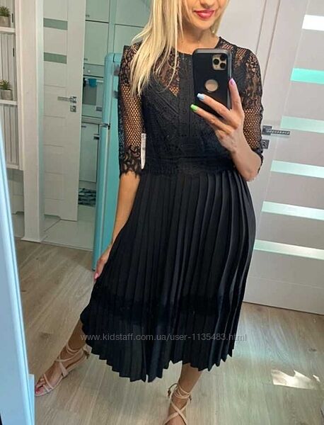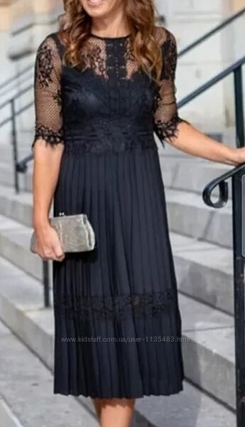 Вишукана сукня міді плісе Zara р. 40/L/12.Спідниця плісе зі вставками з мережива, по спинці блискавка.
