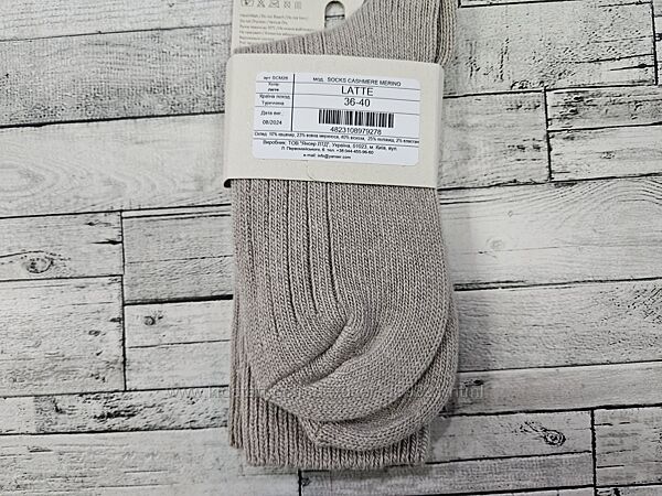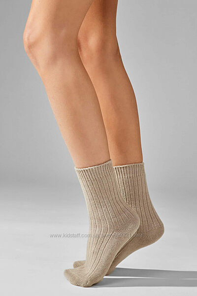Теплі жіночі шкарпетки в рубчик з вовни мериноса, із додаванням кашеміру, стандартної довжини.Кашемір - це нитка, що виробляється з м´якого та теплого підшерстя кашемірових кіз.