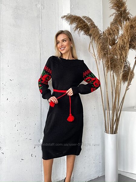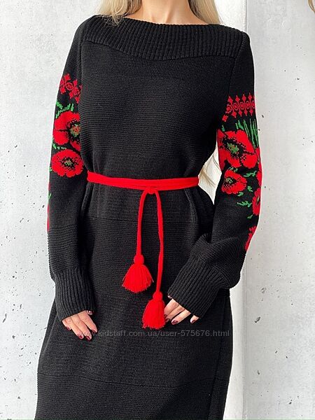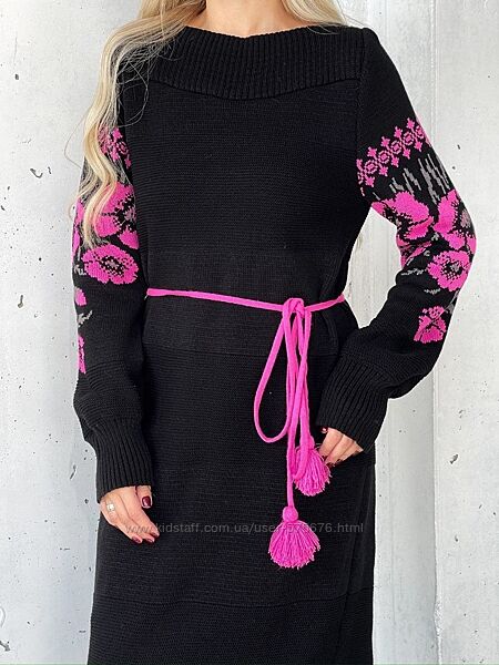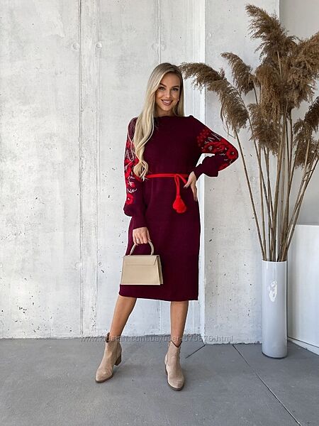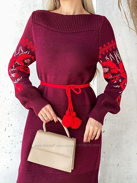 Подробное описание: 46-52 Тепла в´язана сукня в етно стилі