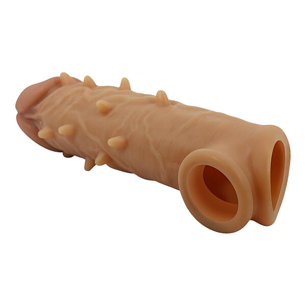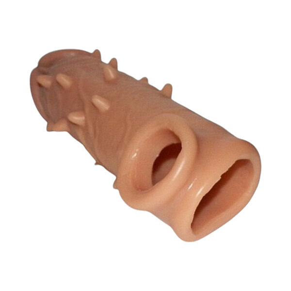 Насадка виготовлена з рідкого силікону, схожого на шкіру, для створення ультрареалістичних відчуттів та ретельно опрацьована для надання реалістичного вигляду.Насадка у формі пеніса з додатковими стимулюючими шипами має додатковий отвір - кільце для яєчок діаметром 2,5 см, завдяки якому вона не мимохіть під час статевого акту.