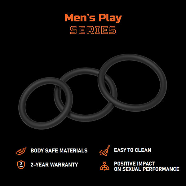 Набір із 3 ерекційних каблучок з колекції Men´s Play - ідеальний вибір для чоловіків, які бажають зміцнити ерекцію та посилити відчуття.Кожне кільце в наборі має різний діаметр, що дозволяє підібрати ідеальну посадку відповідно до ваших індивідуальних потреб.