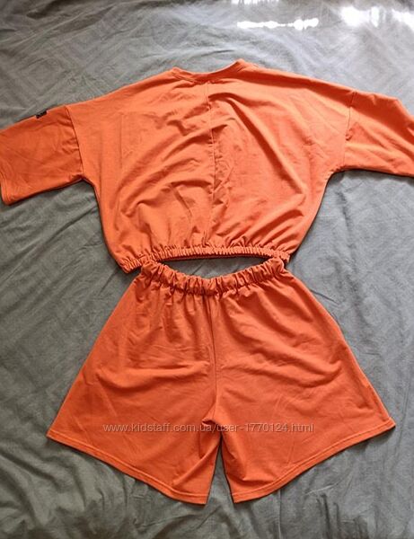 Подробное описание: Жіночий оверсайз костюм оранжевий помаранчевий комплект шортифутболка