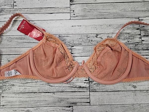 Бюстгальтер з еластичного мережива та еластичного трикотажного полотна, на каркасах. Нижні деталі чашок на підкладці із еластичної сітки. Оздоблення - бантик, ажурні бретельні та оздоблювальні стрічки.р.70D