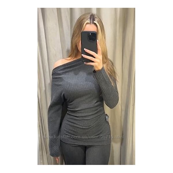 Подробное описание: Топ асиметричного крою в рубчик Zara - S, M сірий