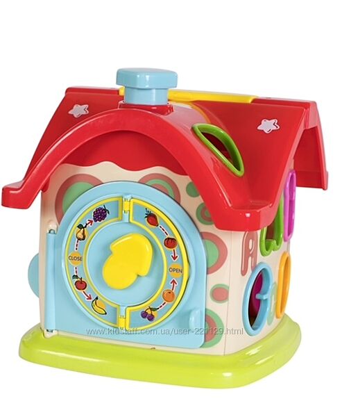 Іграшка «Сортер» від бренду «Baby team» — цікавий навчальний будиночок для діток молодшого віку. Сортер виготовлений з якісних безпечних сертифікованих міцних матеріалів (полістирол і ABS-пластик). Іграшка виконана у вигляді будиночка, є отвори різні за формою, кольором для сортування (отвори у вигляді геометричних фігур і букв англійського алфавіту), механічний годинник і рахівниця. Дитина буде розвивати дрібну моторику, координацію рухів і сприйняття кольорів, слух, вивчати цифри і букви з іграшкою від бренду «Baby team». Іграшка рекомендована для хлопчиків і дівчаток віком від 12-ти місяців.нова