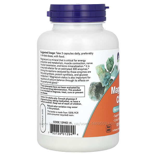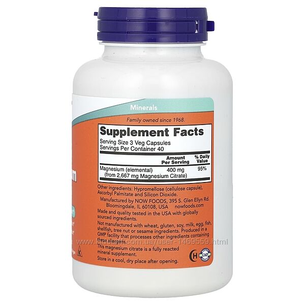 Подробное описание: NOW Foods цитрат магнію 120 рослинних капсул магне для кісток мязів нервов