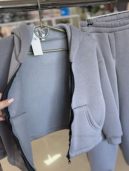 Подробное описание: Теплый спортивный костюм для девочки, зип-худи и штаны на затяжках