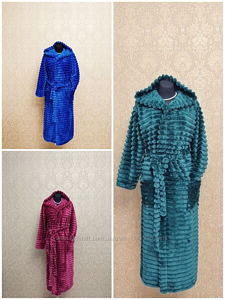 Подробное описание: Жіночий махровий халат на запах з капюшоном та карманами
