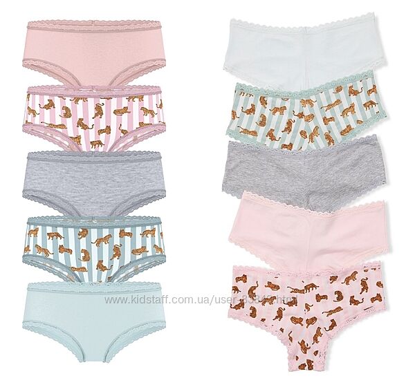 Лише оригінал з оф.магазину (USA). В наявності набори білизни, в наборі 5шт: • коттон + гипюр, розмір XS-р. • коттон MIX, розмір XS-p. • гіпюр, розмір L-p.