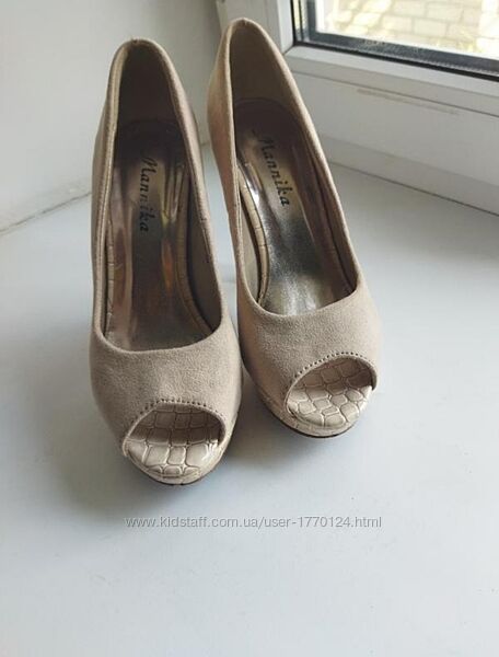 Жіночі босоніжки замшеві бежеві босоніжки туфлі на підборах 36р