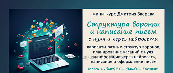 Дмитрий Зверев Планирование структуры автоворонок и написание писем для них - с нуля и через нейросети (2024)Что конкретно вы получите: