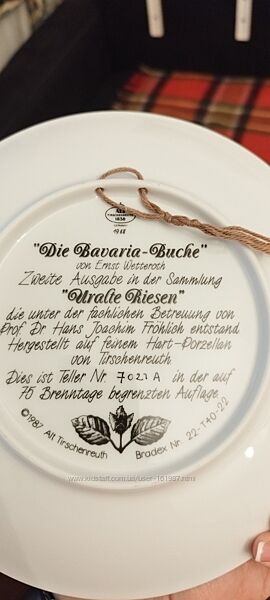 Коллекционная немецкая тарелка Die Bavaria-Buche 1987г.