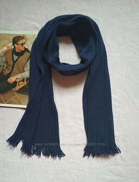 2. Шарф вязаный мужской темно синий с бахромой marks & spencer