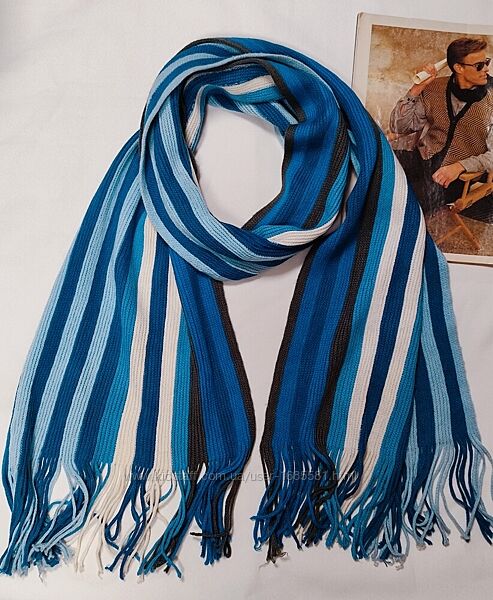 1. Шарф вязаный теплый шарф с бахромой комбинированный в полоску акрил marks & spencer100%акрил
