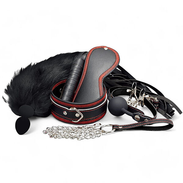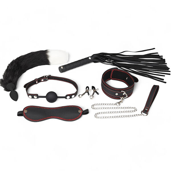 Використовуйте кожну частину набору відповідно до своїх уподобань. Затискачі для кляпа, коміра та сосків регулюються для ідеальної посадки. Пов'язка на очах забезпечує повне затемнення, батіг легкий і зручний у захопленні, а анальну пробку можна легко вставити зі змащенням.