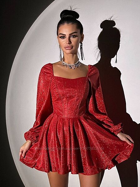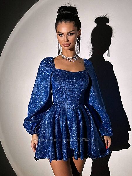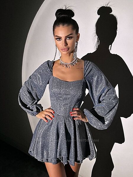 Подробное описание: Вечірня сукня блискуча корсетна з пишною спідницею з обємними рукавами