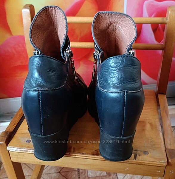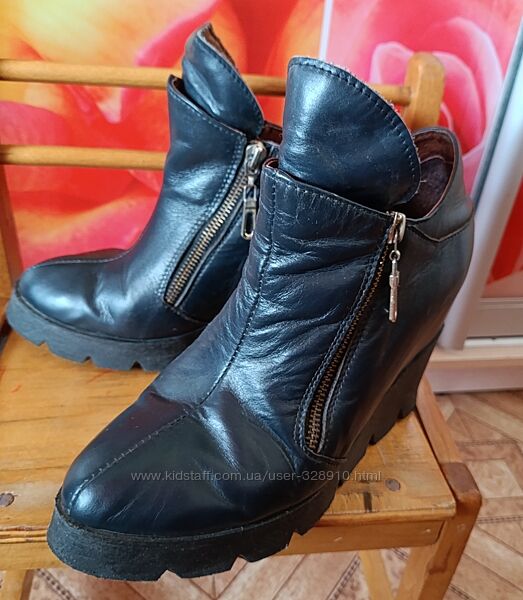 жіночі шкіряні черевики ботильйони темно-синього кольору 39 р. , 25,5 см