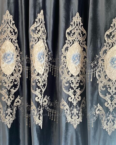 Бархатні штори з вишивкою. Оксамитова краса преміум якості, яка зробить ваш інтер’єр по справжньому елітним! Ціна 1500грн/метр, висота 3м/набирається потрібна ширина штори.Можливе якісне пошиття, широкий асортимент аксесуарів. Будь-яка форма оплати, відправка замовлень по Україні та за кордон.