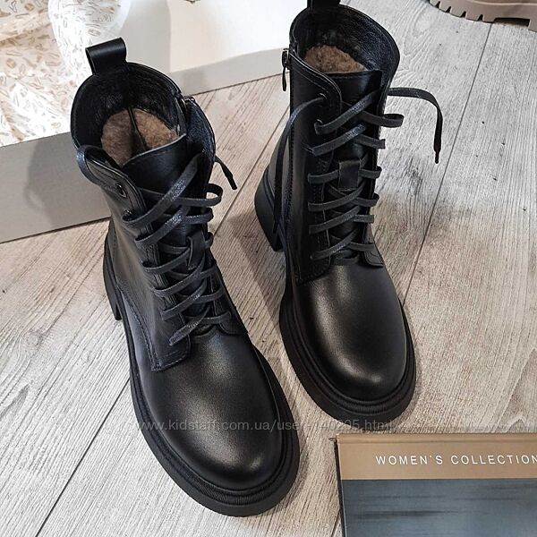 Распродажа Зимние Ботинки натуральная Кожа гладкая чернаяВнутри мех набивная шерсть