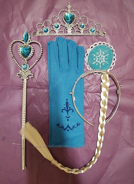 набор Принцесса Эльза Анна Фрозен - - - коса - палочка - тиара - перчатки Холодное сердце , средний пальчик 6,2см Длина косы 42см, крепится на заколке 220грн
