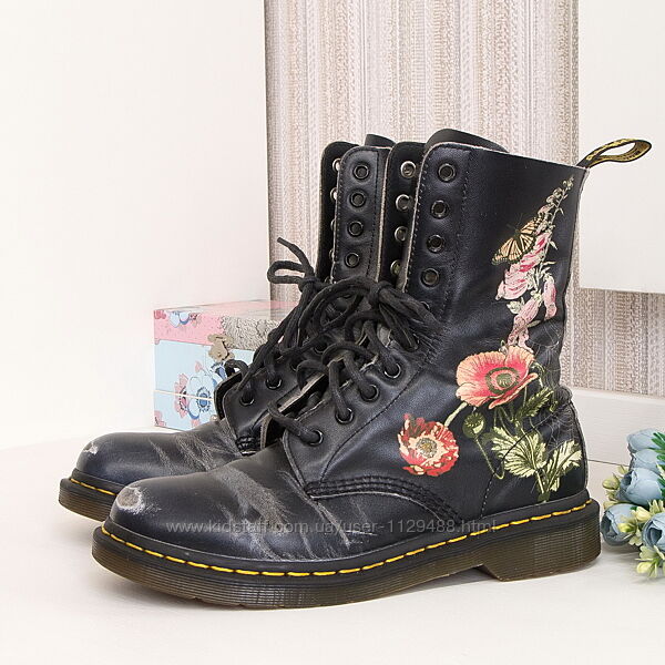 Ботинки грубые кожаные с рисунком, Dr Martens. Натуральная кожа.