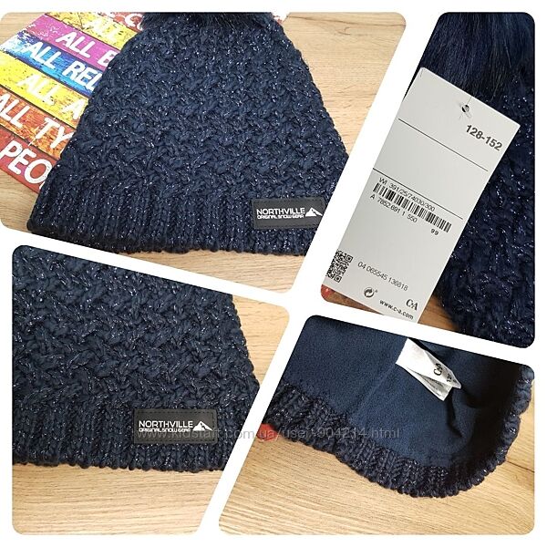 Трендова тепла зимова якісна шапка✨ з флісовою підкладкою для дівчинки на зиму фірми C&A!Розмір: 8-12 років (128-152 зріст)