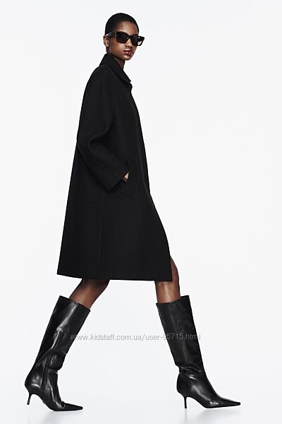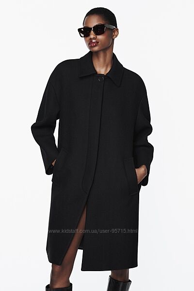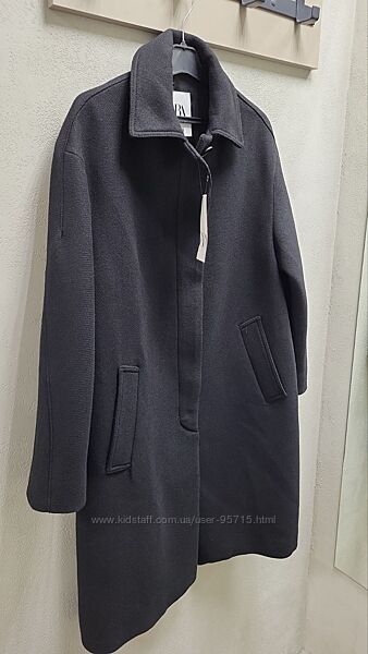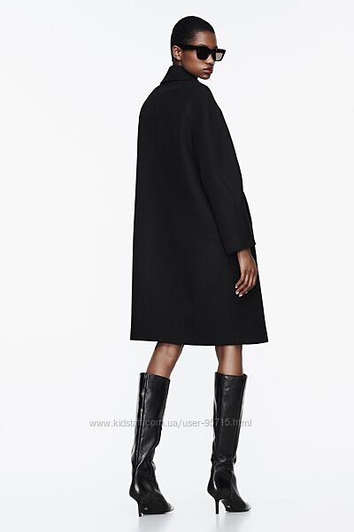 Подробное описание: Чорне пряме пальто зі змішаної вовни Zara - S