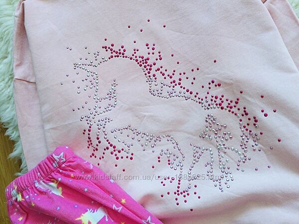 11 років, 146 зріст Next фланелева піжама з Однорогом з камінців. ніжно - рожевий реглан градієнт і байкові штаніки в принт. м"якенька, тепла, рукавчик приспущений, як зараз модноСтан нової!