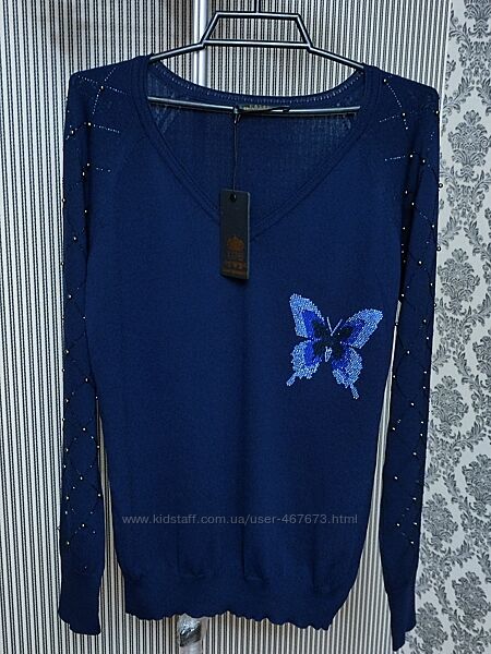 ✅✅ Дуже якісна кофтинка зі стразами KAZEE Турція! Оригінал ! Розмір S на наш 46 р. Колір темно-синій як на фото 3.ПОГ 44 см +дуже гарно тягнеться, довжина 63 см, довжина рукава від горловини 68 см. 👍👍Дуже якісна тканина! Кофтинка гарненька, підійде під все! Бусінки надійно закріплені з виворота!