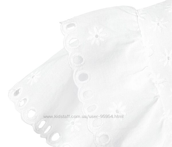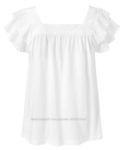 Блуза: приємний шовковистий трикотаж, 50% поліестер, 38% бавовна (органічна), 12% віскоза Елегантний виріз з вишивкою рішельє Короткі рукави з воланами з вишивкою