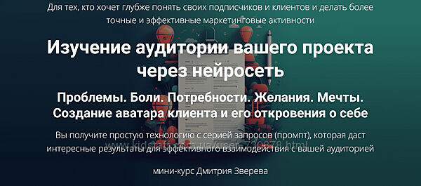 Дмитрий Зверев Изучение аудитории вашего проекта через нейросеть (2024)Что конкретно вы получите: