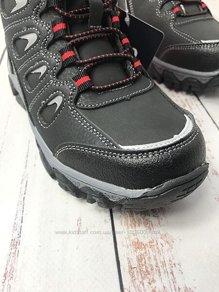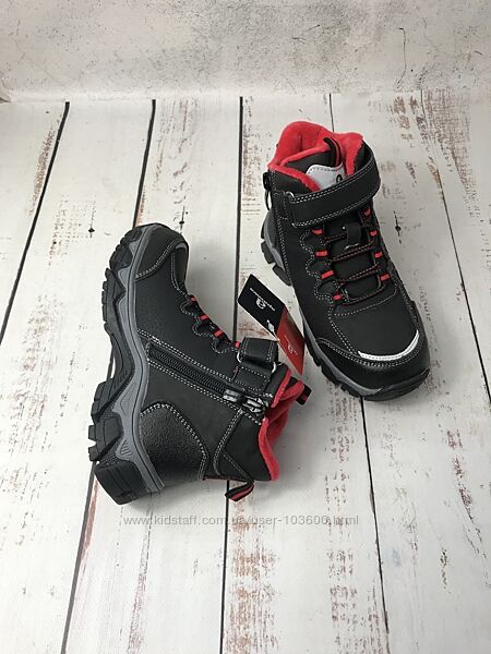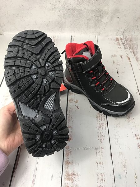 Верх взуття виконано з якісної сучасної пластичної екошкіри, завдяки чому легко підлаштовуються під індивідуальні особливості будь-якої стопи, з безліччю світловідбивних елементів в якості декору та для безпекиВсередині утеплені м´якеньким хутряним прошарком, мають флісову підкладку зверху яскравого червоного кольору для контрасту та знімну теплу флісову устілку з повітряною подушкою на п´яті
