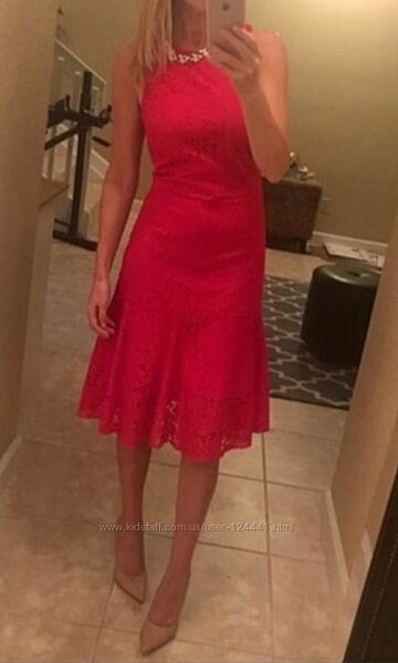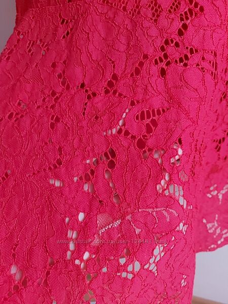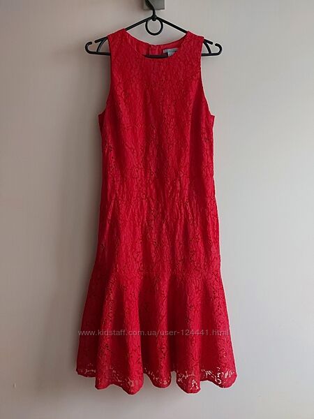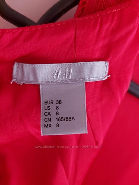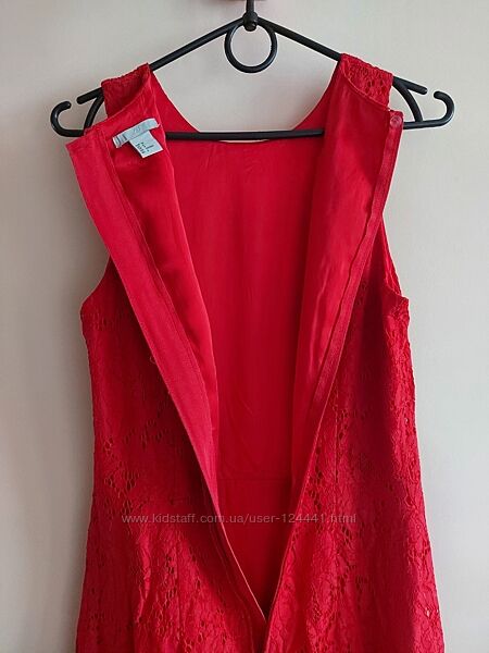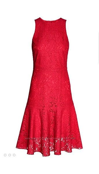 Червона мереживна сукня H&M, святкове кружевне плаття міді, р. 38
