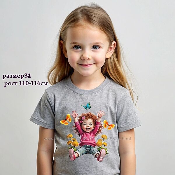 Подробное описание: серая футболка для девочки с принтом размер 34.