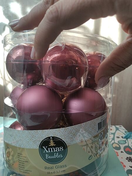Набір рожевих новорічних куль на ялинку 15 шт.