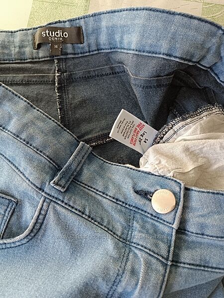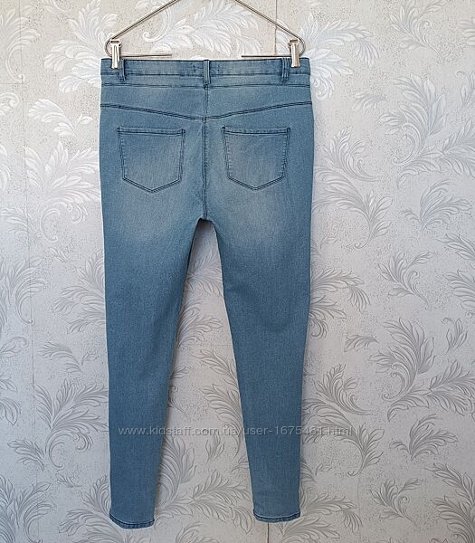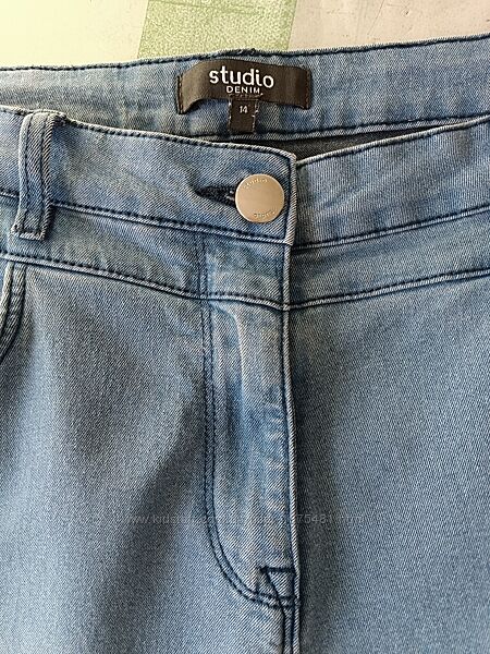 р 14 / 48-50 классные голубые укороченные 7/8 джинсы штаны брюки узкие скинни с высокой талией стрейчевые Studio Denim* Замеры в ровном виде и максимально потянув указаны на фото.