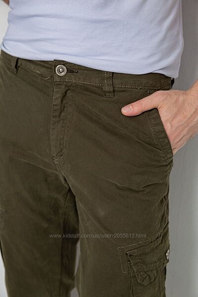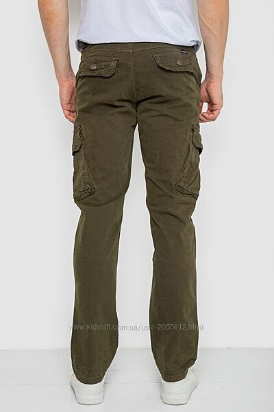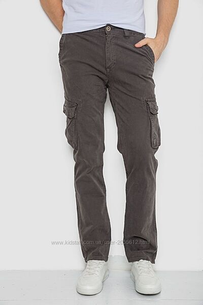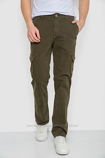 Чоловічі однотонні штани вільного крою виготовлені з тканини, що не тягнеться. Посадка середня. Застібаються на блискавку і гудзик. Є дві додаткові кишені. Сезон весняно-осінній.Розміри: 32, 33, 34, 36, 38, 40, 42