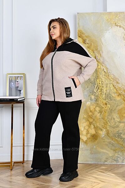 Подробное описание: 52, 54, 56, 58 Прогулянковий костюм тринитка на флісі та барашек