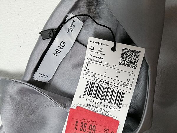 Платье в бельевом стиле атласное с разрезом Mangoновое,размер Л,идет на М